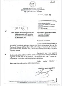 Ce lundi 10 octobre 2025, le gouverneur Daniel Bumba a, publié un accusé de réception, en réponse à la demande du ministre de l’intérieur, qui a exigé un rapport détaillé sur la gestion des fonds des sinistrés. Dans ce document, il rejette toute responsabilité et rappelle que la crise humanitaire a été placée sous l’autorité directe de Jacquemain Shabani via une commission ad hoc interinstitutionnelle. Il décline aussi formellement toute implication dans l’utilisation des ressources du gouvernement central.