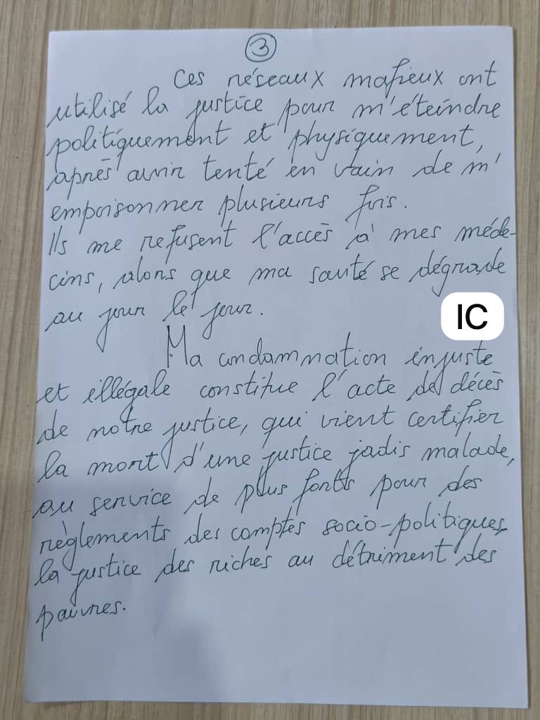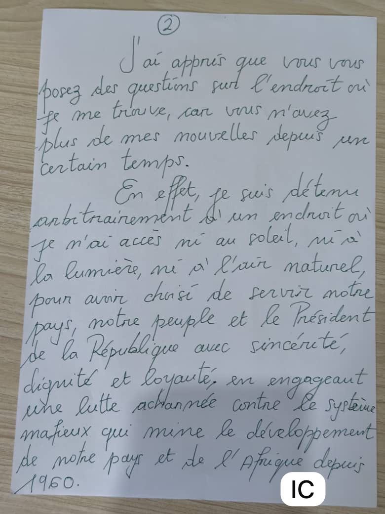 « J’espère que vous êtes en bonne santé et que vous vous réveillez toujours à 04h du matin pour aller à l’école (…) J’ai appris que vous vous posez des questions sur l’endroit où je me trouve, car vous n’avez plus de mes nouvelles depuis un certain temps. (…) En effet, Je suis détenu arbitrairement dans un endroit où je n’ai accès ni au soleil, ni à la lumière, ni à l’air naturel, pour avoir choisi de servir notre pays, notre peuple et le Président de la République avec sincérité, dignité et loyauté… Ces réseaux mafieux ont utilisé la justice pour m’éteindre politiquement et physiquement, après avoir tenté en vain de m’empoisonner à plusieurs reprises. Ils me refusent l’accès à mes soins médicaux, alors que ma santé se dégrade au jour le jour. (…) Soyez forts mes enfants. C’est le chemin rocailleux que je choisis, celui de la lutte pour le changement et la justice juste et équitable pour notre pays. », a écrit Constant Mutamba dans sa deuxième lettre de depuis son lieu de détention, cette fois-ci adressée à ses enfants.