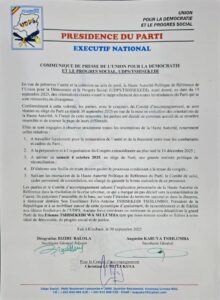 Rappelons que le Chef de l’État, Félix Tshisekedi avait reçu le vendredi 19 septembre dernier, Augustin Kabuya et Déo Bizibu Balola dans son bureau de travail de l’OUA, où il a appelé à ces deux protagonistes à l’unité pour sauver le parti.